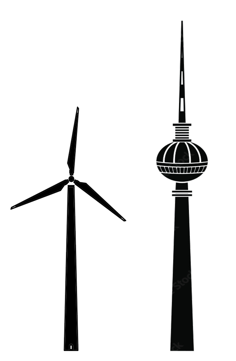 Vergleich zwischen Windkraftanlage und Fernsehturm )