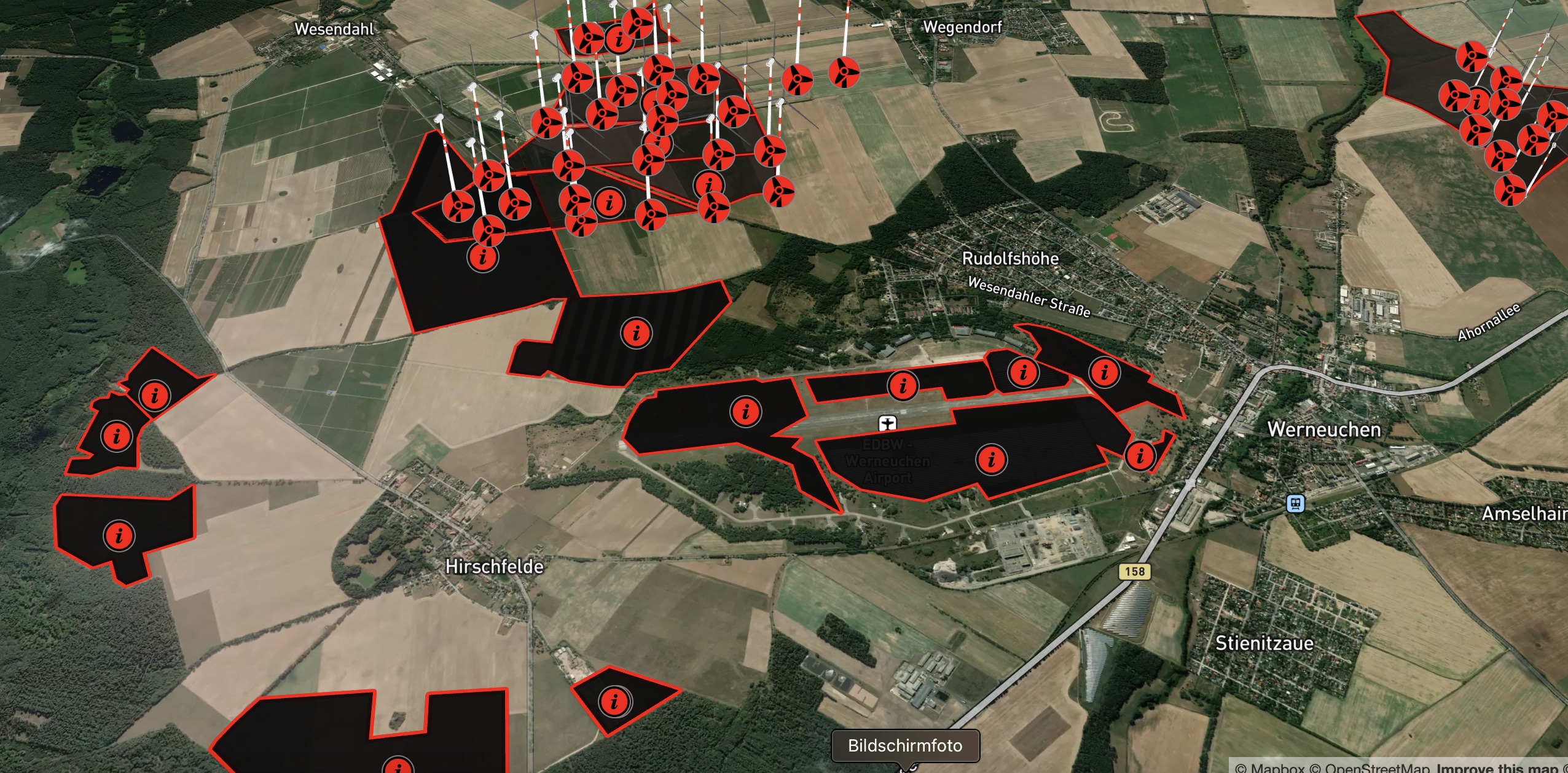 Infrastrukturelle Herausforderungen: Die Errichtung der Wind- und Solarparks erfordert erhebliche Infrastrukturinvestitionen, wie z.B. den Bau von Zufahrtsstraßen und die Verstärkung des Stromnetzes. Dies kann zu erheblichen Störungen im lokalen Verkehr und zur Beeinträchtigung von Acker- und Waldflächen führen. Dazu müssen diese Kosten von der Region Barnim und auch dem Land Brandenburg mitfinanziert werden. Die geringen Beiträge (Windeuros) der Anlagenbetreiber kompensieren die Gesamtausgaben hierbei in keinem Maße.